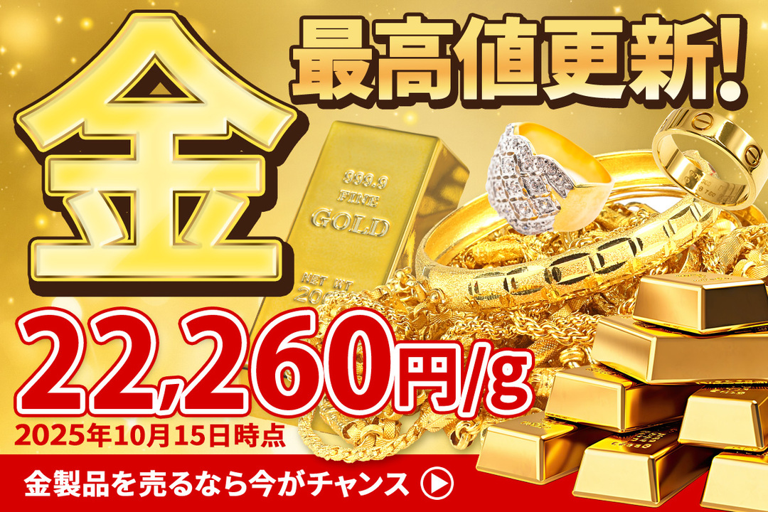 世界的な相場高騰を受け、金・プラチナ・貴金属の買取価格が驚くべき水準に達しました。「いつ売ろうか迷っていた…」 「こんなに高くなるなんて!」そんなお客様は、この歴史的な高値を見逃さないでください!